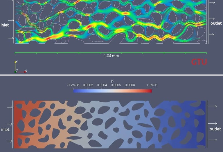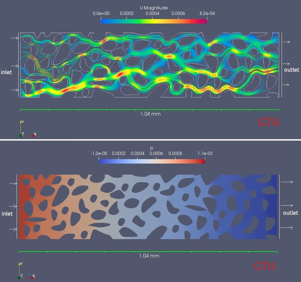 A CFD study where the capilar flow velocities and head loss through the filter is studied.